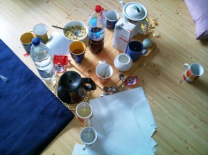 Kissen-, Tassen- und Deckendurcheinander ist alles, was übrig blieb. (Ich hab’s noch ein paar Tage stehen lassen.)