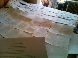 Die Vor’arbeit‘: Probelesen am Mainufer (Restverbrannter Sommerrücken), Titelblätter basteln, Reader zusammenstellen, setzen, drucken, heften. An frisch vom Drucker ausgespuckten Papier die Finger verbrennen. Lastminuteland: Schlafplätze alle ausgebucht. Aber es wird. So wie es immer wird.