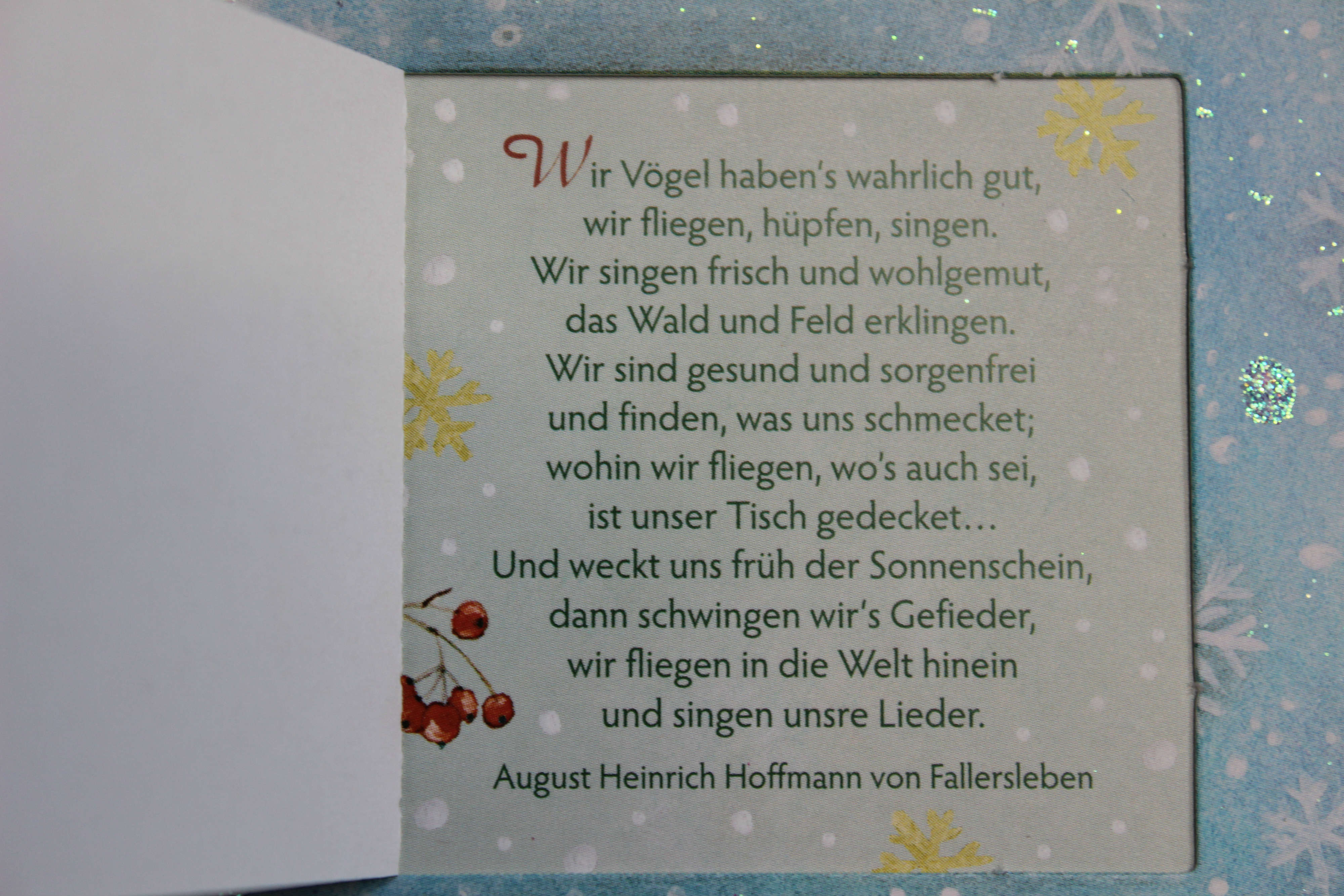 >>Lach doch nicht, sonst mach ich nicht weiter<<, sagt Susanne. >>So, zweiter Vers: