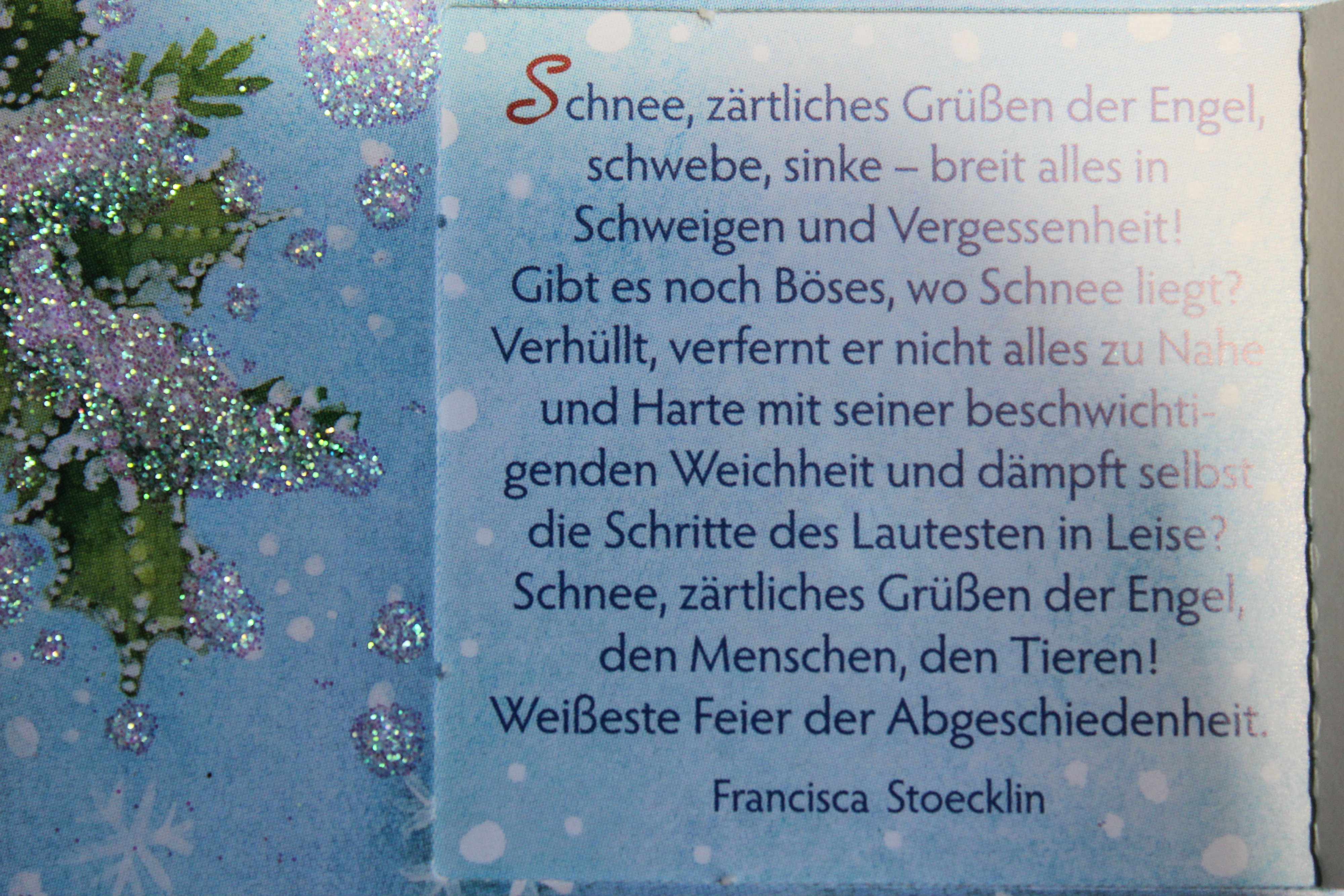 Am 7. Dezember wünscht sich Vater, dass es schneit, weils im Hundertjährigen Kalender steht, und ist traurig, weils das nicht tut. In dieser Stadt und drumherum schneite es und blieb liegen. Ätsch!
