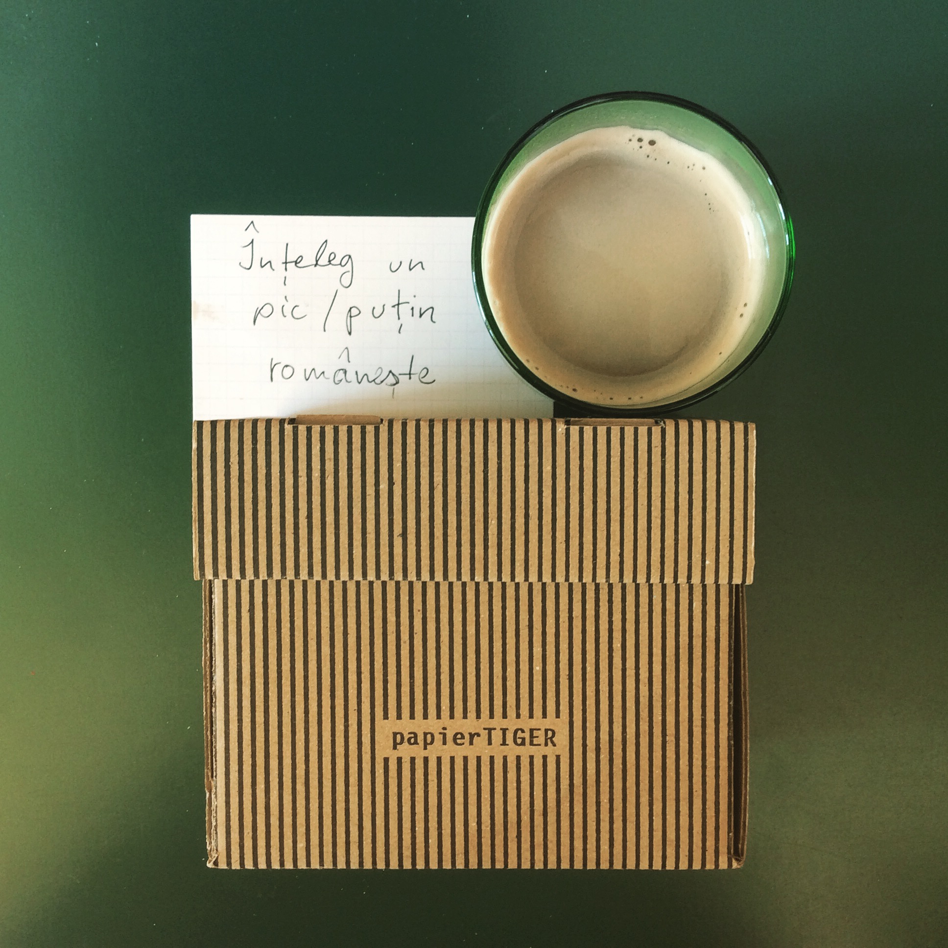 Ich lerne eine meiner Muttersprachen neu, deren Klang mir so vertraut ist wie meine Fähigkeit sie anzuwenden abwesend. Mit Kaffee durch ein paar Vokalbelkarten blättern. Prăjitură. Ich kann kein rrr.