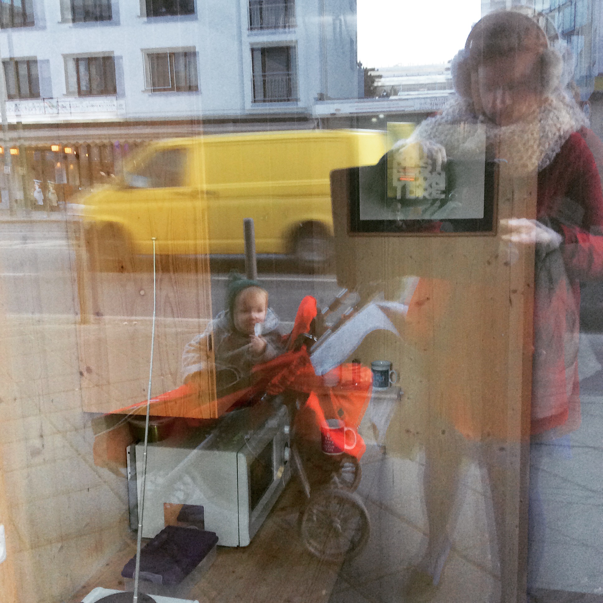 Dem Kind ein Eis versprochen, oder eher mir selbst (Matcha-Eis, nämlich). Die übermütige Idee, sich ins Café hinein zu setzen. Das Kind verzieht erst das Gesicht, wahrscheinlich weil Eis kalt ist, und klagt so sehr, dass wir wieder gehen. Ich nehme an, es wolle Eis, sei aber frustriert, weil Eis eine unangenehme Temperatur habe. Stellt sich heraus: Es ist frustriert, weil es selbst mit dem Löffel essen will. Ich bleibe ab da alle drei Meter stehen, um ihm vom Eis zu reichen.