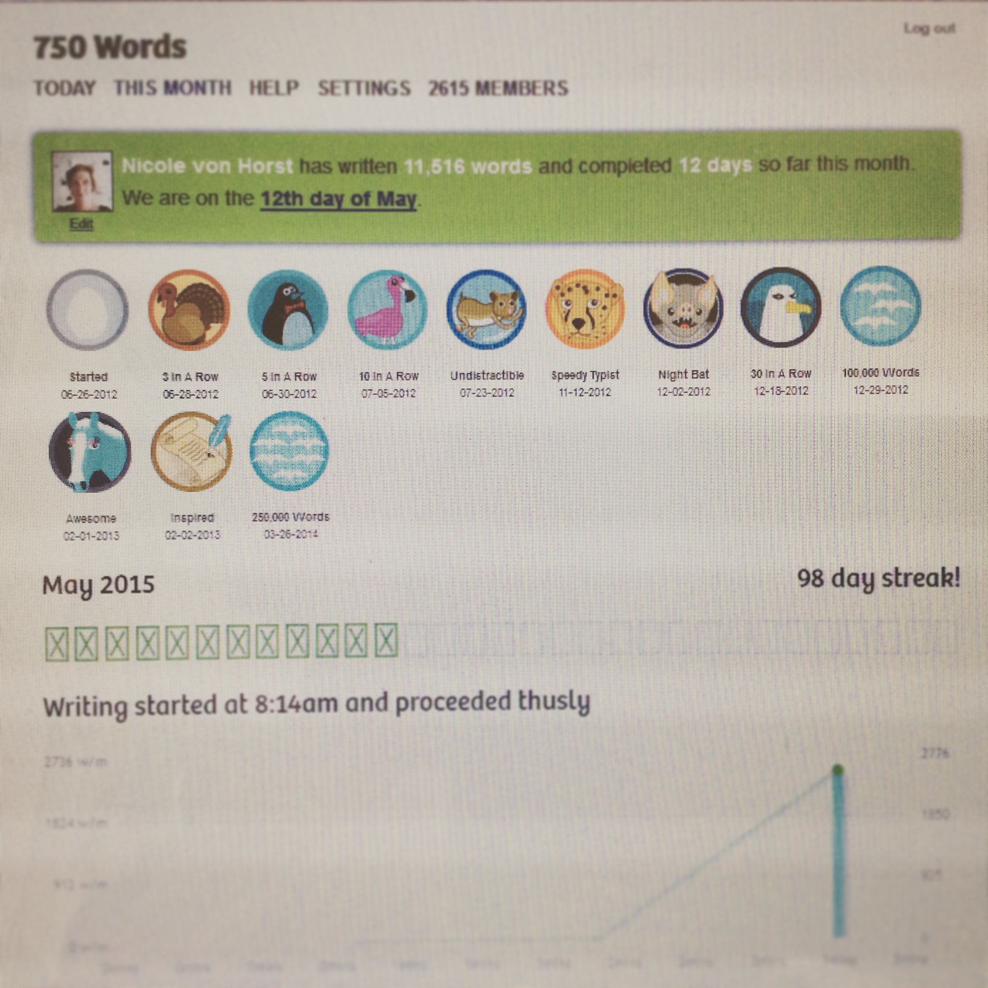 Weil ich müde bin und in den letzten Stunden eh viel geschrieben habe, kopiere ich meinen Blogtext einfach in das Textfeld von 750words.com. Das ist ein wenig geschummelt, aber pfff. (Fast hundert Tage! So knapp! Nach JAHREN ein neuer Vogel-Badge in Sicht!)