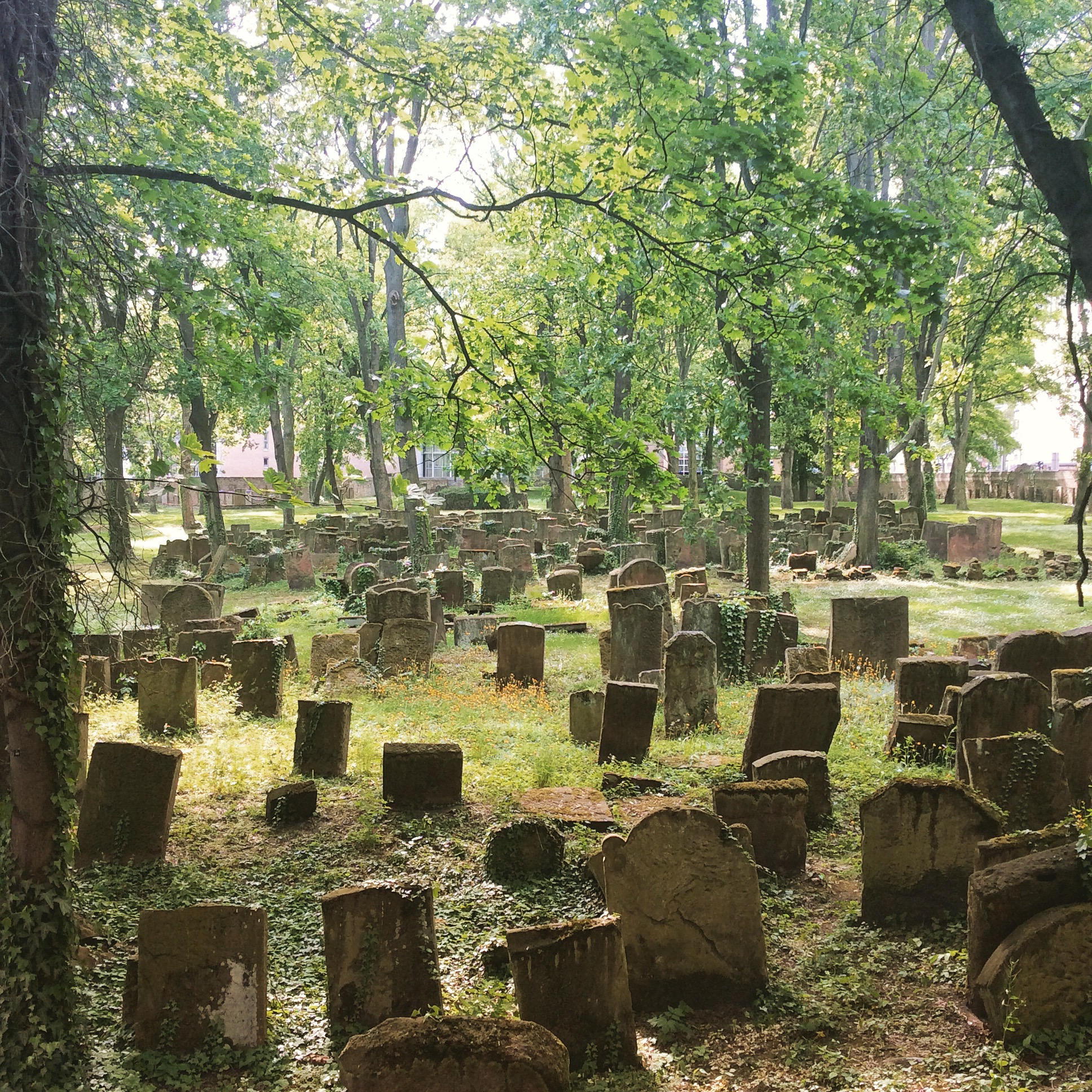 Das Kind aus der Krippe abholen. Der alte jüdische Friedhof nebendran ist grün und schattig, lush. Wo ich sein sollte, eigentlich: in der Uni. Als ich gedacht hatte, dass es unpraktisch sei als Elter eine Veranstaltung von 18 bis 20 Uhr zu haben, hatte ich noch keine Veranstaltung von 16 bis 18 Uhr. Das ist die Abhol-Rushhour für Vollzeitkrippenkinder.