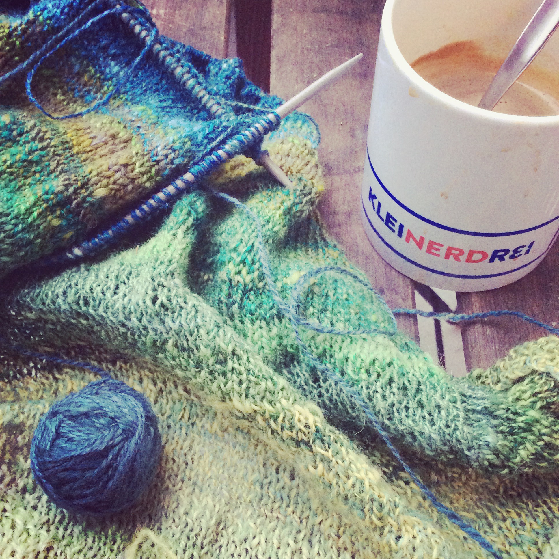 Der Papa zuhause. Das Kind mit ihm im Bett und ich auf dem Balkon, eine Pause vor dem kleinerdrei-Hangout. Mit Kaffee, weil noch was zu schaffen ist, vor dem Schlafengehen. Das Kind aus dem Bett raus und auf den Balkon. Widerwillig wieder zurück. Ich höre von außen durch das Schlafzimmer, wie es sich empört in den Schlaf schreit und gehe, um ihm über den Kopf zu streicheln. Gegen Mitternacht lege ich mich dazu.
