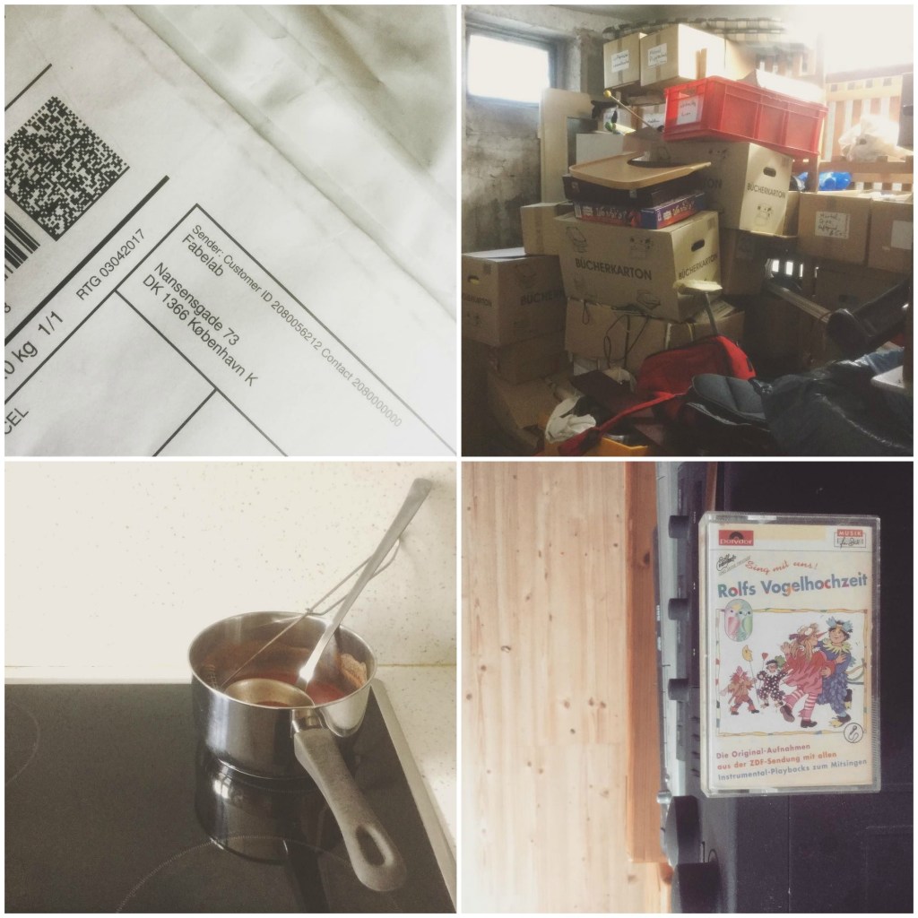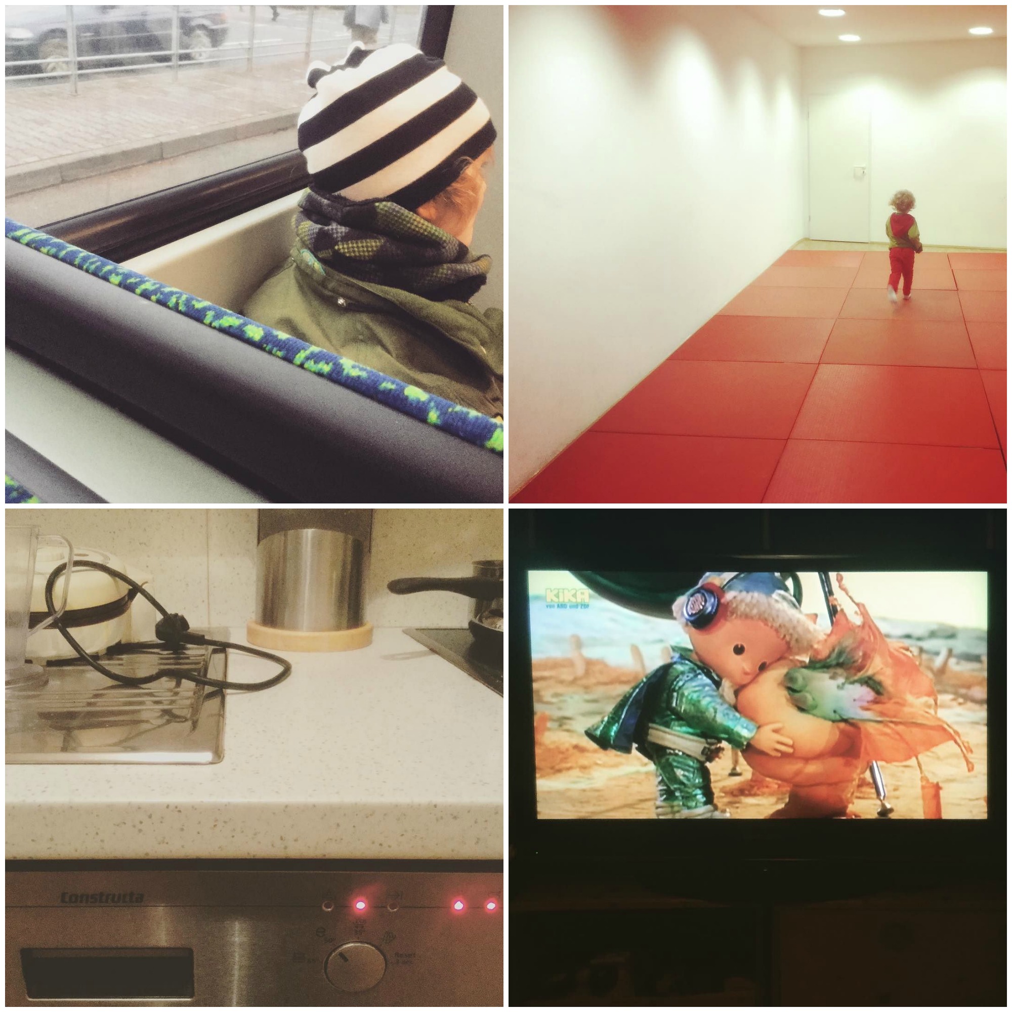 Nachmittags geht es mit T., Nachbarin und Kind der Nachbarin zum Kinderliedersingen im Nachbarschaftszentrum. Wir rennen einer Straßenbahn hinterher, T. kann mit bei (Bahnverpass-)Panik nicht rennen, also klemme ich mir T. unter den Arm und renne so los, wir verpassen die Bahn trotzdem. Gehetzt, aber nicht zu spät kommen wir alle an, singen und tanzen, T. taut auf, wünscht sich Lieder, H. kommt nach der Arbeit auch dazu. Zuhause mache ich die Spülmaschine voll, die Spülmaschine macht die Arbeit, wir sind ein gutes Team. Und das Sandmännchen hat das schönste Outfit des Tages.